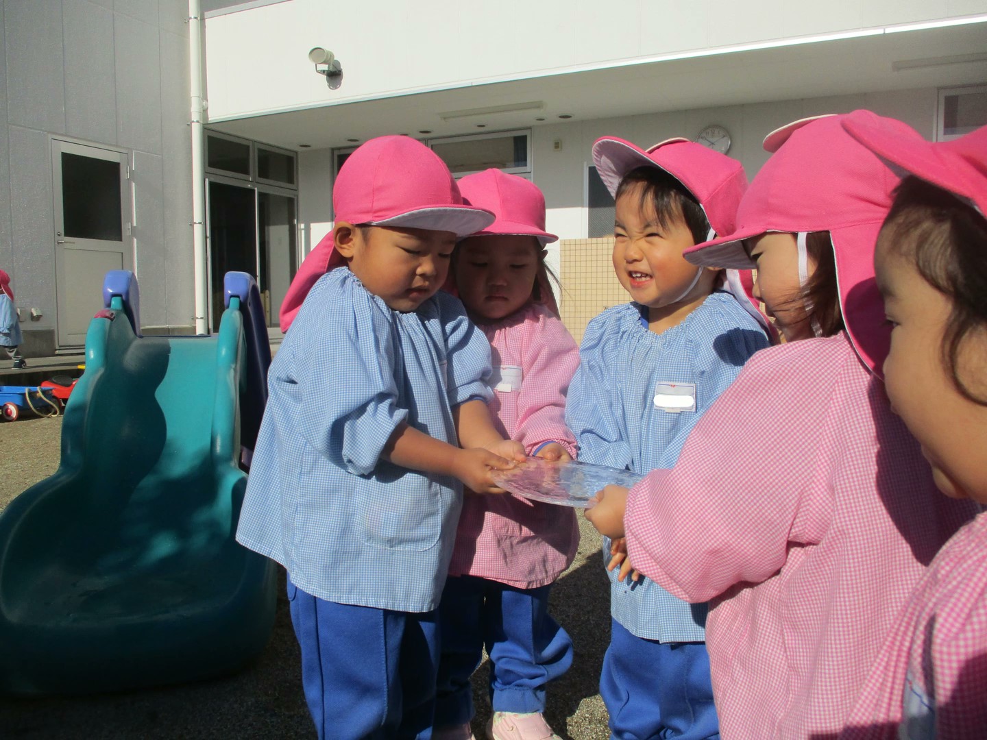 すべり台に氷ができていました。「つめたい」と言いながら順番に何回もさわっていました。