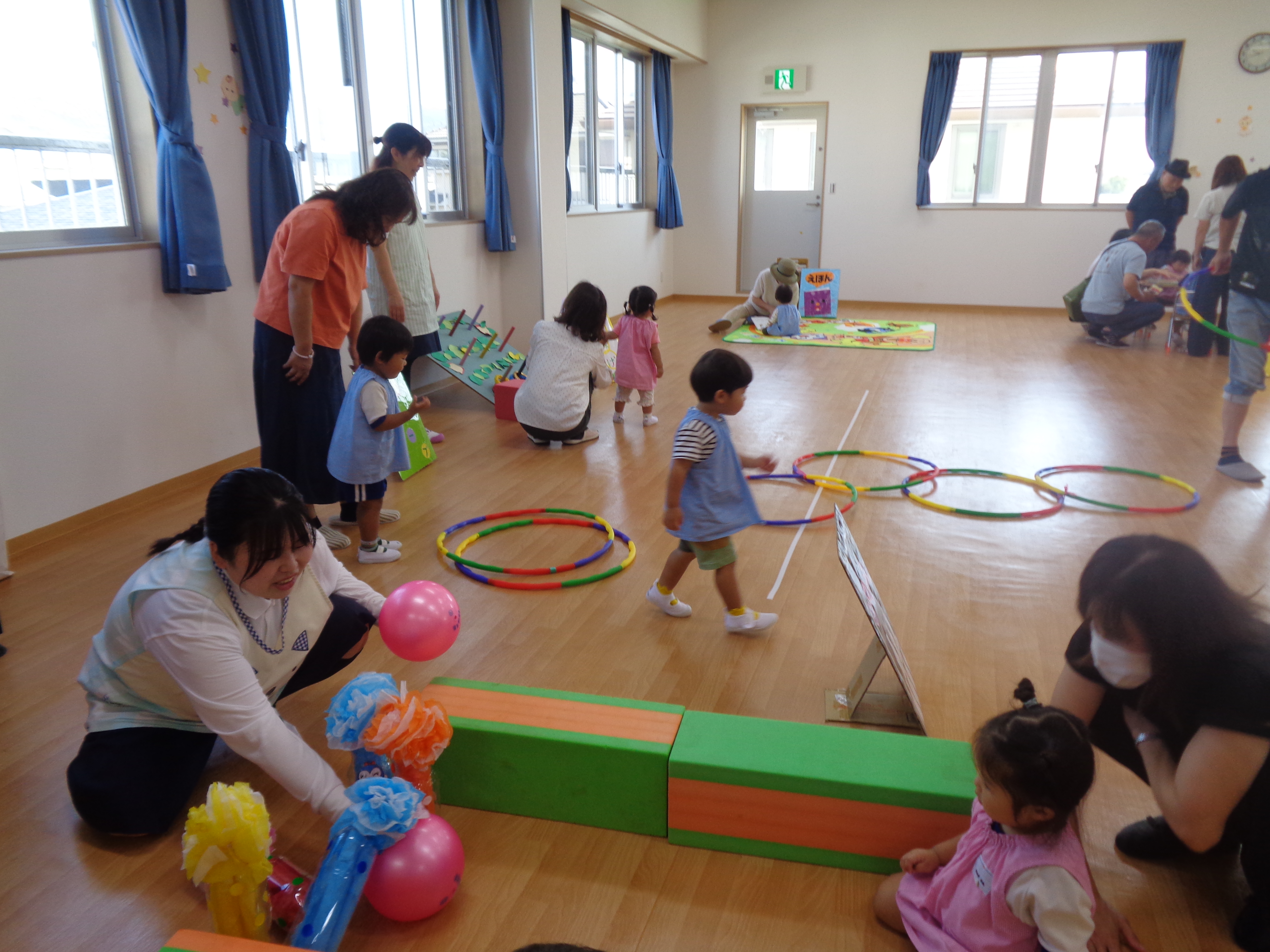 ②かけっこの見学では、ちびっこ応援団になりました。「がんばれー!」と大きな声で応援し、ゴールすると拍手をして一緒に喜びました。