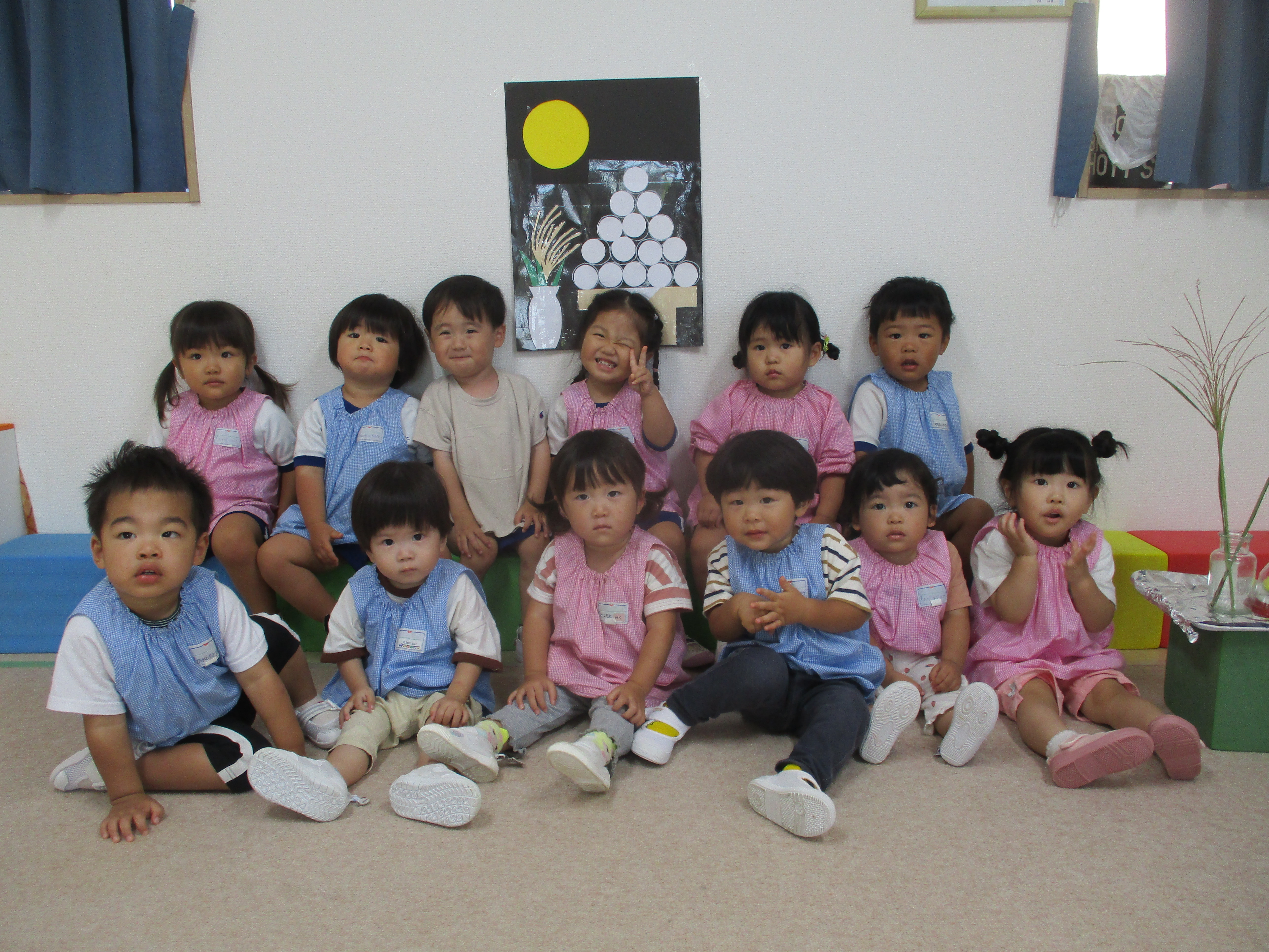 お月様の話を聞いたり、お団子合わせゲームをしました。夜はまんまるお月様見たかな?