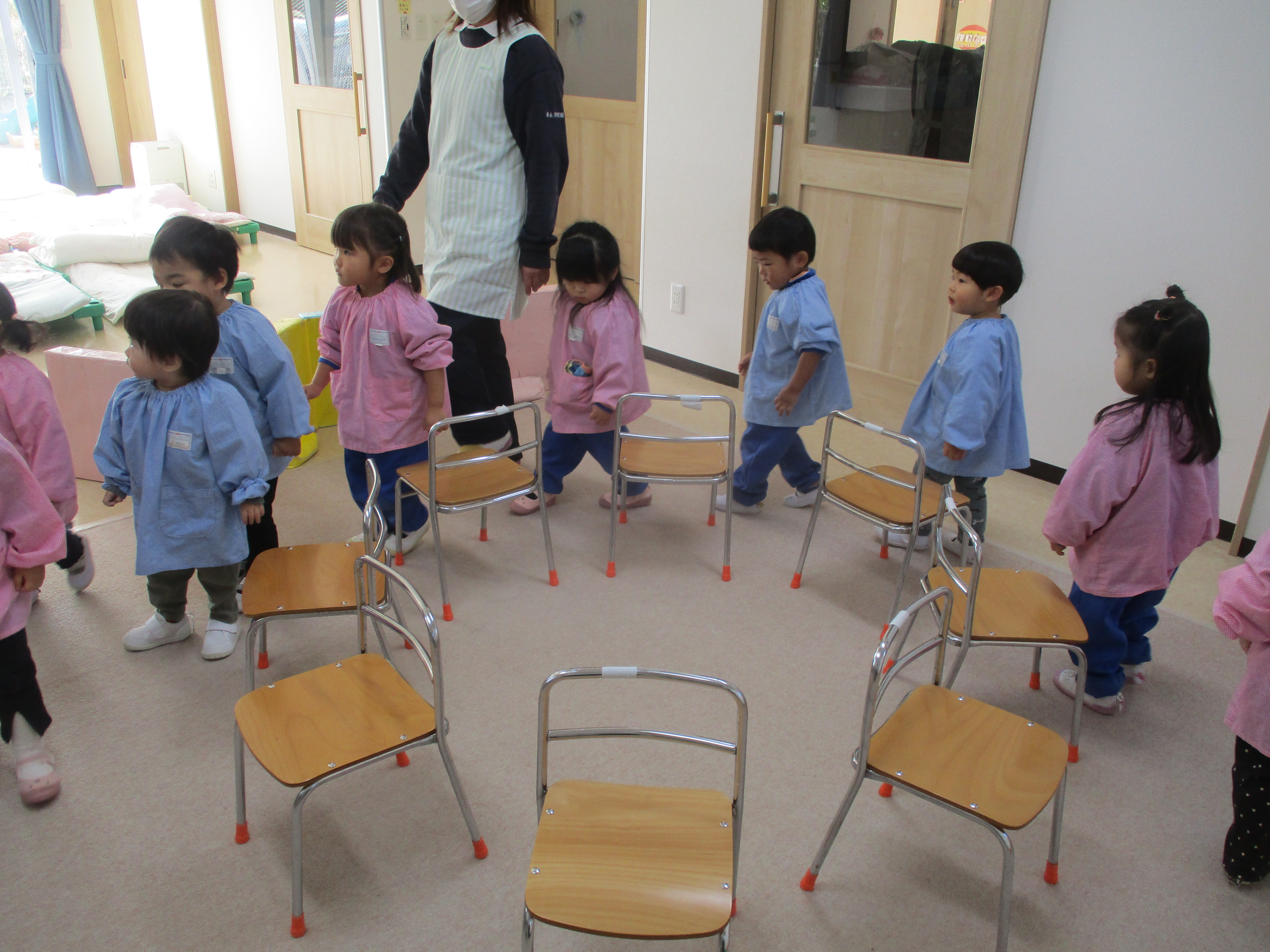 大好きな遊びのひとつです。ルールもおぼえて、音楽が止まると直ぐに空いている椅子に座りにいきます。真剣な表情がかわいいです。