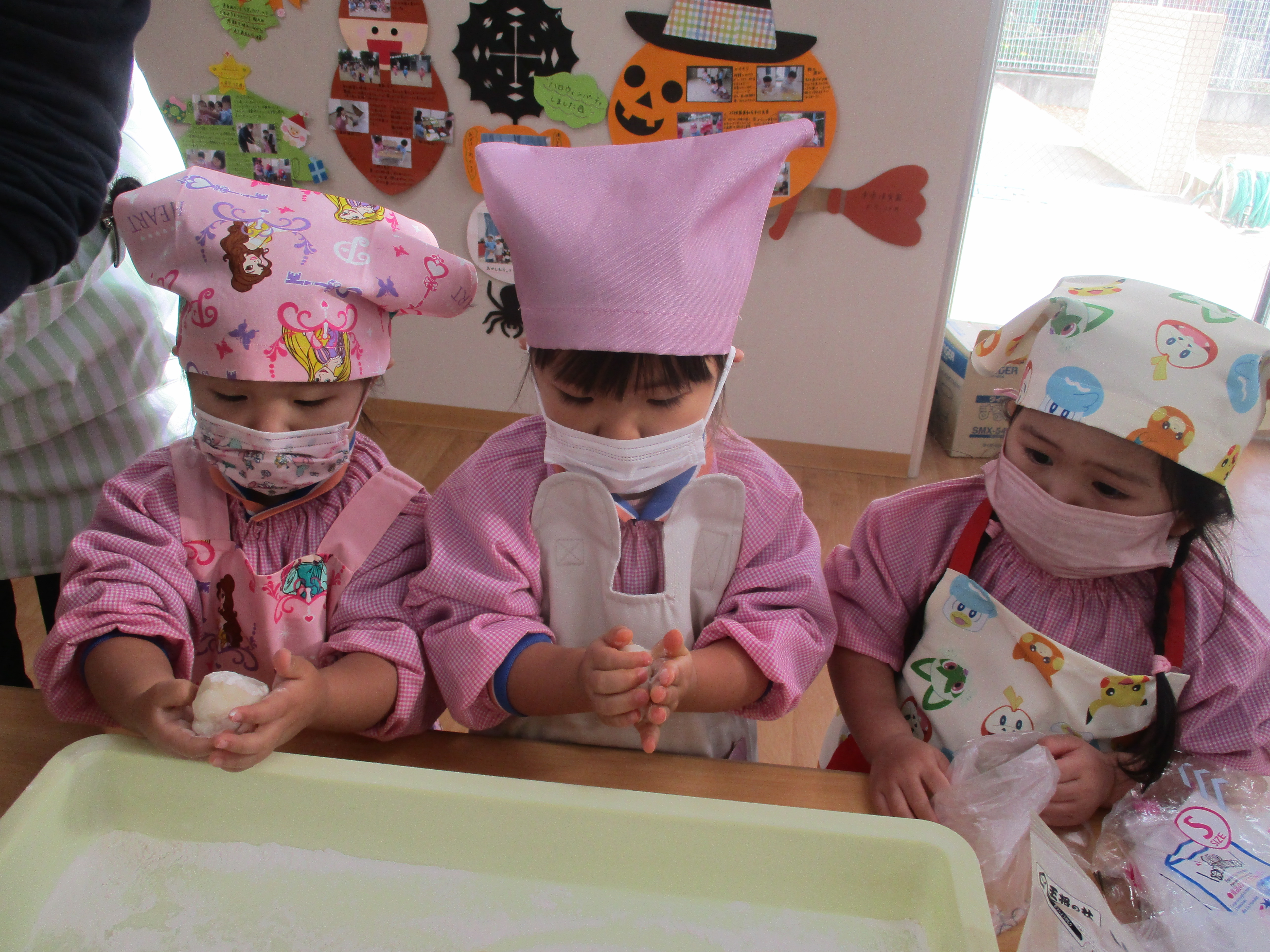 2歳児さんは持ち帰るお餅を自分で丸めました!