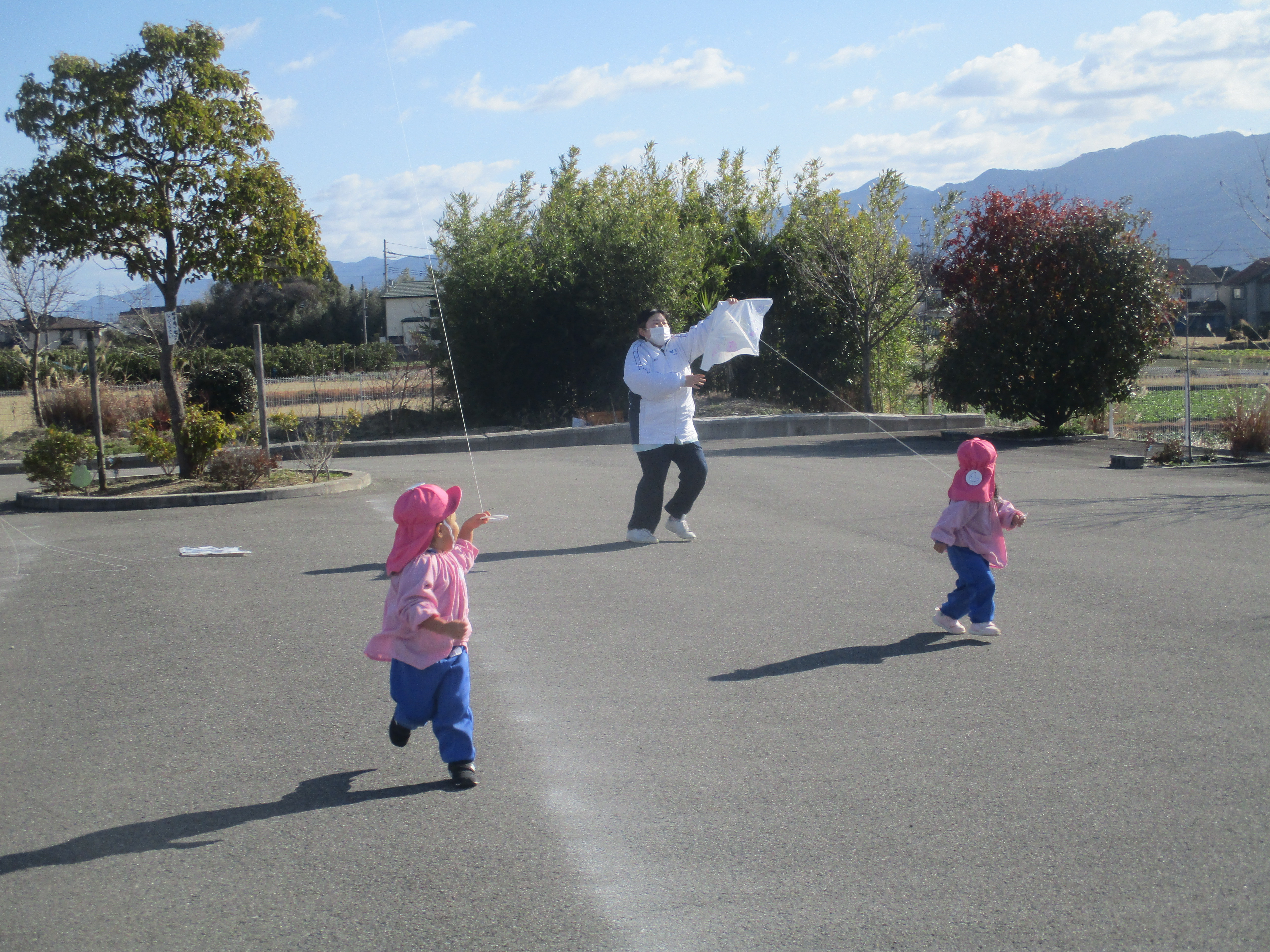 広いロータリーのところで、凧あげにいきました。風が強くふいたので空高くあがりました。